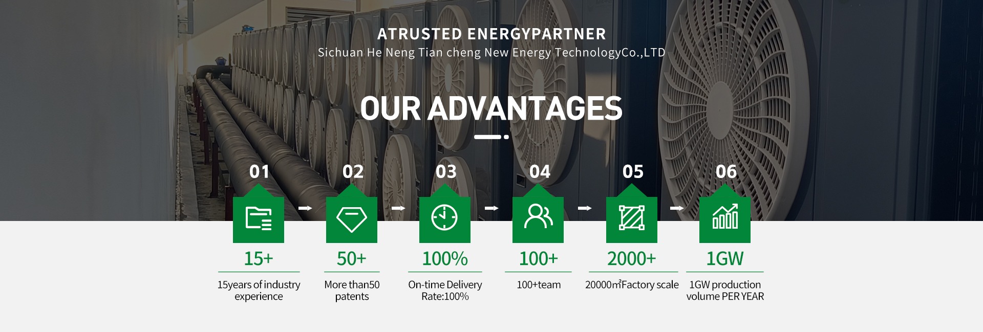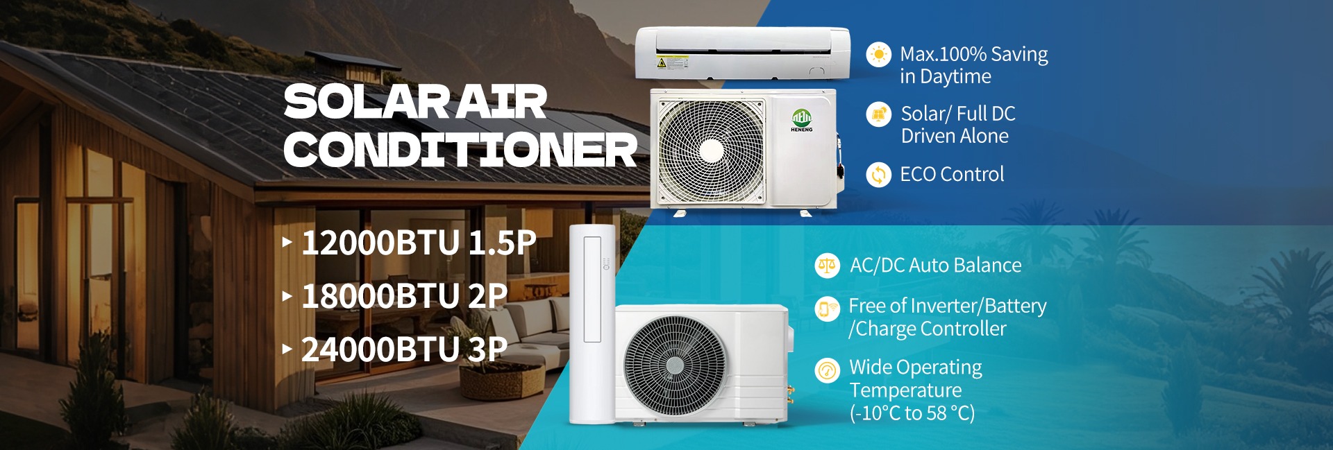 Sichuan Heneng Tiancheng New Energy Technology Co., Ltd. is a high-tech enterprise focusing on the research, development, production and application of new energy. The company's products cover solar air conditioners, energy storage systems, solar power generation systems and photovoltaic-energy storage-DC-flexible load (PVDCFL) systems with core intellectual property rights. The company is committed to providing customers with zero-carbon technology solutions and a series of products with core values, contributing to the realization of the global "double carbon" strategic goal.